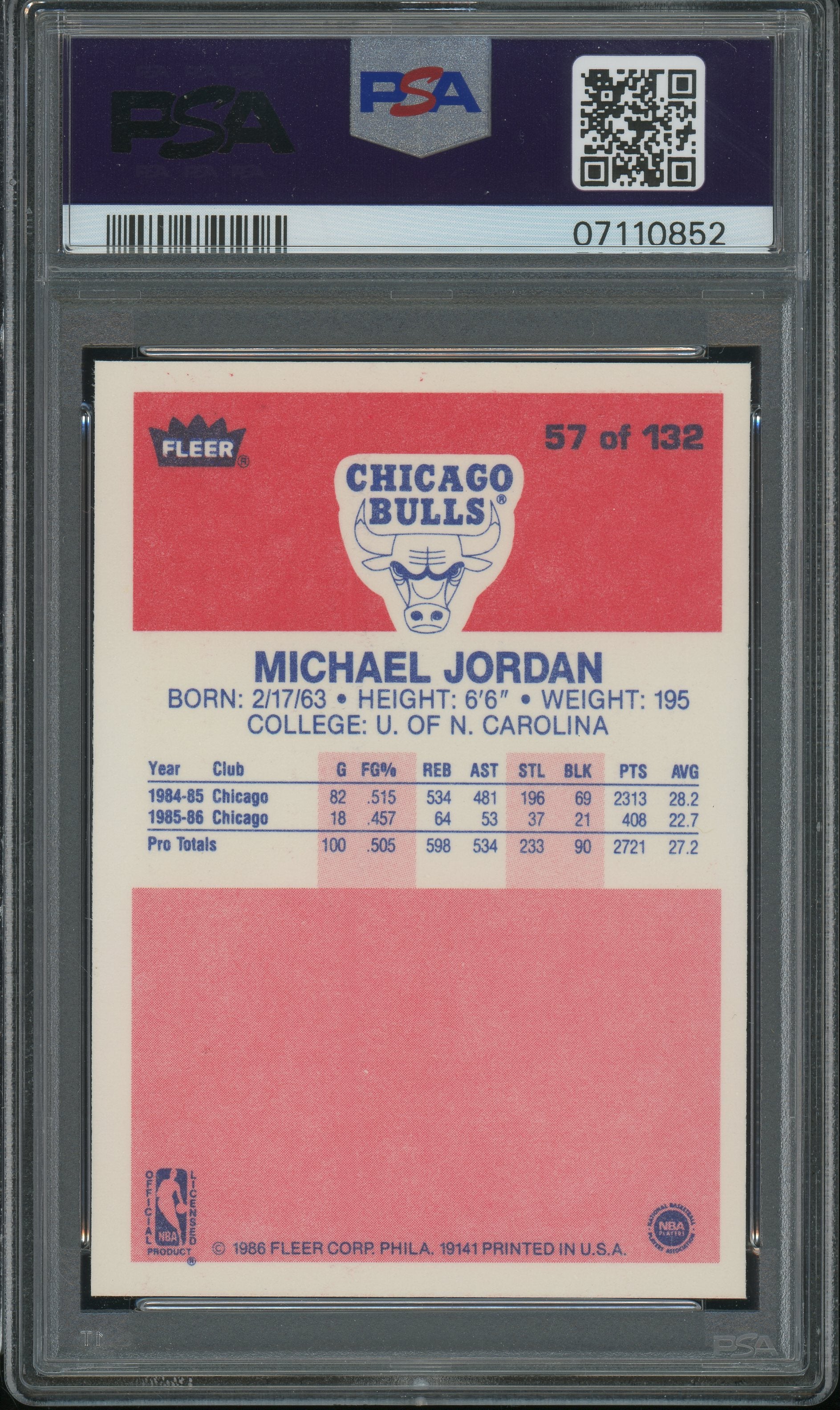Michael Jordan - 1986 Fleer PSA 10 - 7110852